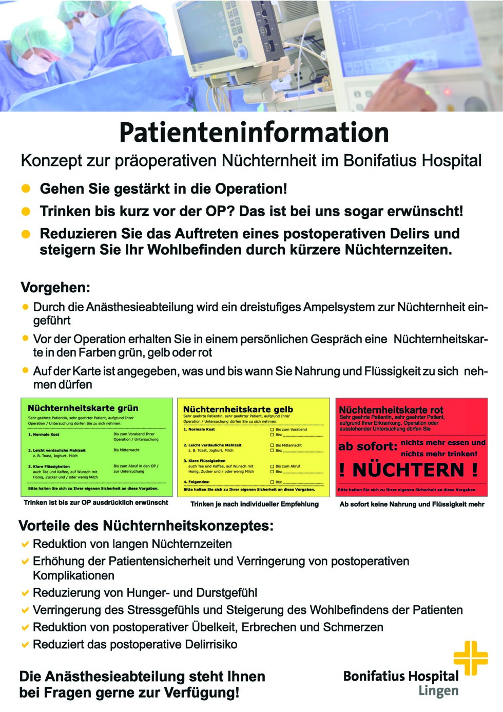 - Kommen Sie am OP-Tag nüchtern! Ab 24 Uhr nichts essen!