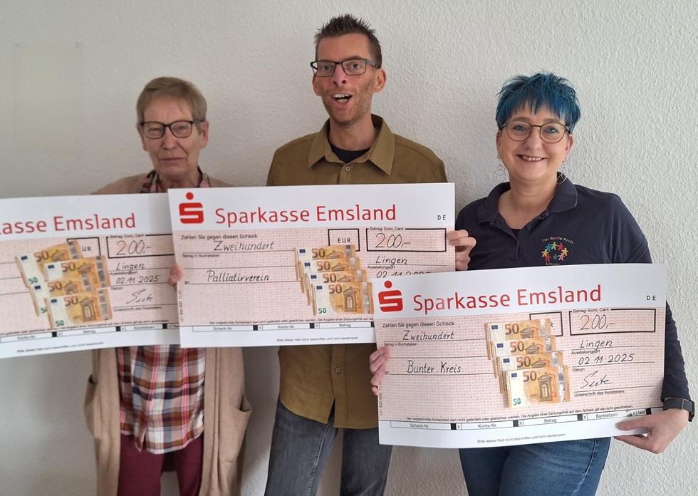 Die Erlöse gehen immer 1:1 an gemeinnützige Einrichtungen, diesmal auch wieder an drei der St. Bonifatius Hospitalgesellschaft. Spontan wurden die Beträge um je 50 Euro erhöht. 250 Euro erhält der Bunte Kreis Lingen, eine Nachsorgeeinrichtung zur Beratung und Begleitung für Familien mit kranken oder zu früh geborenen Kindern. Auch 250 Euro gehen an die Kinderintensivstation des Boni. Ebenfalls 250 Euro erhält der Spezialisierte Ambulante Palliativdienst (SAPV) Lingen, der die Lebensqualität und die Selbstbestimmung schwerstkranker Menschen in ihrer vertrauten häuslichen oder familiären Umgebung erhalten und verbessern möchte.