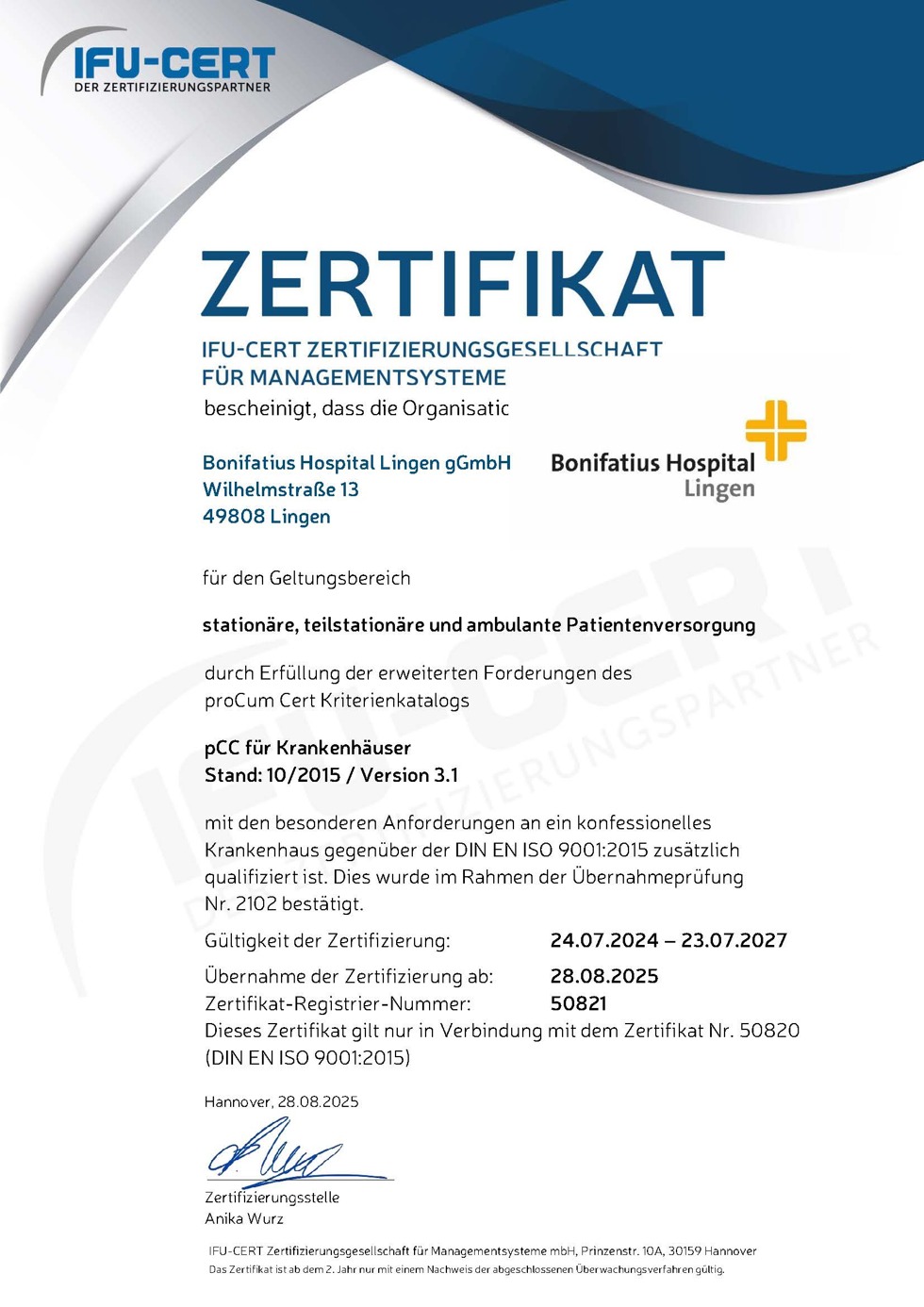 | Qualitätsmanagementsystem nach IIFU-CERT KH V.3.1 |